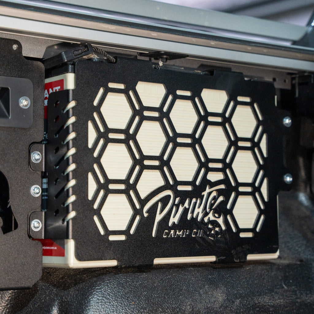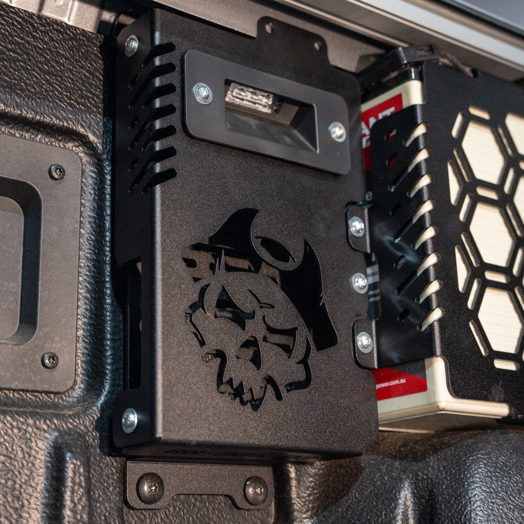 We’ve designed this battery mount specifically to fill up the dead space within the tub. It sits above the wheel arch, has a provision for a BCDC, retains the factory light & runs all the wires so they’re hidden directly back to your tub switch panel. We’ve designed this around the Giant Power 170Ah lithium battery.