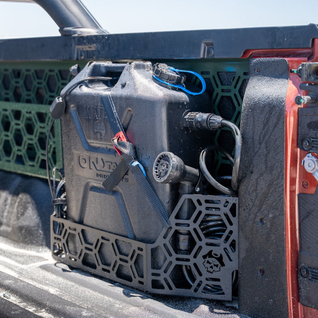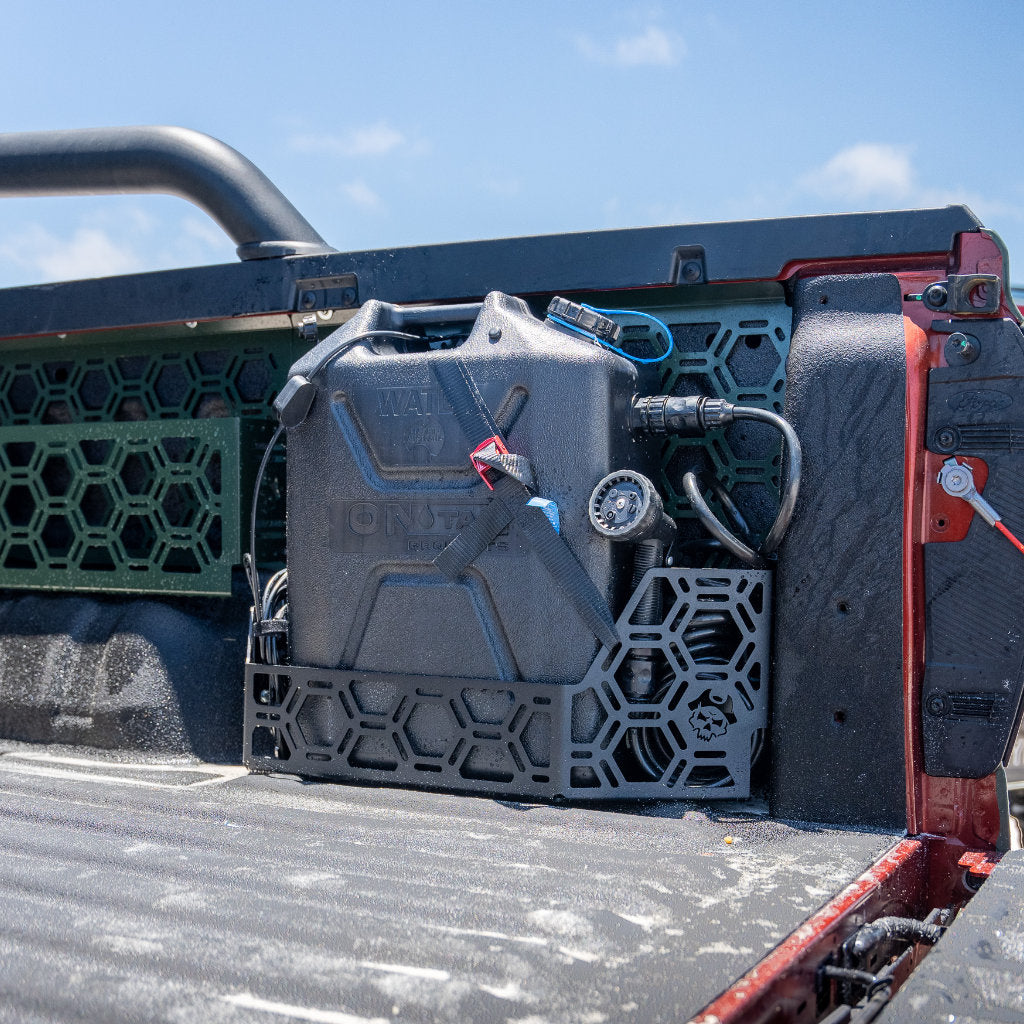 Designed specifically for the Next Gen Ford Ranger/ Volkswagen Amarok 2023+, this ingenious little gem creates the perfect storage solution for your 20L jerry can without invading your valuable tub space.