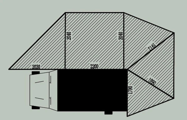 Dimensions: 2260mm x 250mm x 200mm | 4 x rain arms for water run off | 4 x LED strip lights set at a warm colour to detract bugs