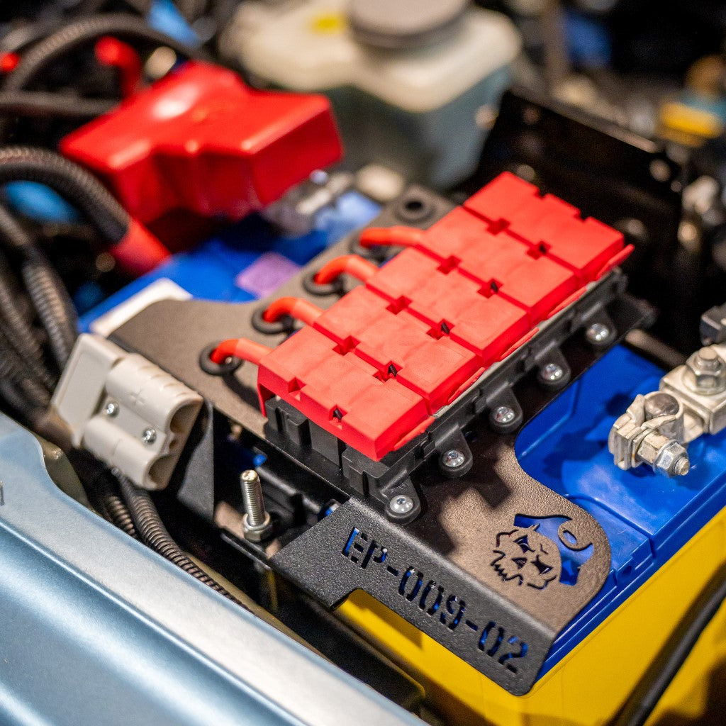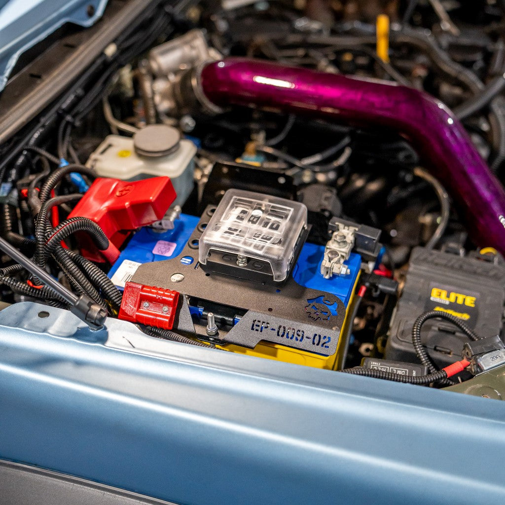 Just what I was looking for, keeps the Jimmy bay from filling with ugly wire spaghetti. I have the unsuitable FB battery and simply cut up the standard bracket to fit underneath. Only feedback would be that including hardware to mount the fuse holders would be nice. Shipping was fast and communication good, I’ll be back for more gear!